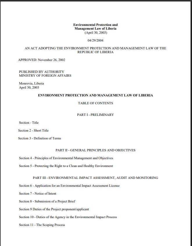 AND WHEREAS it is acknowledged that Liberia’s biodiversity plays a crucial role in maintaining global